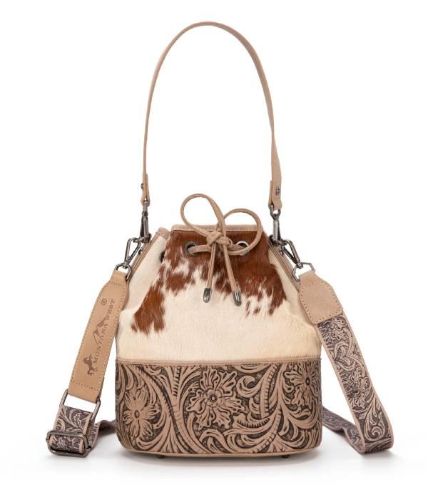 Montana West Cowhide Tooled Bucket Shoulder/Crossbody Bag