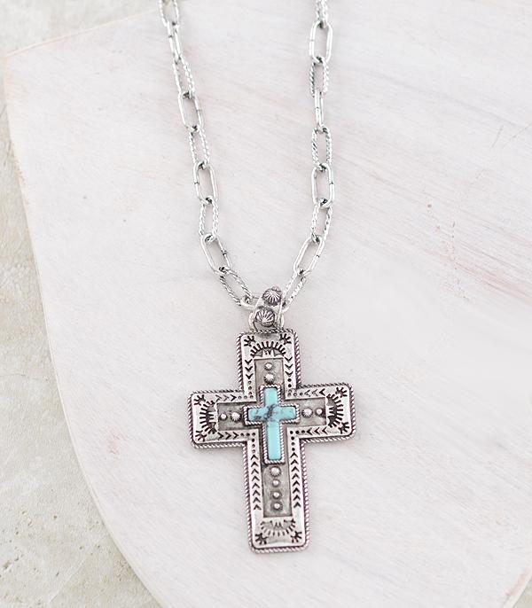 Wholesale Turquoise Cross Chunky Lariat Necklace
