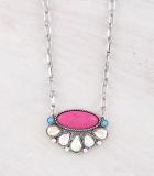 Wholesale Western Pink Semi Stone Pendant Necklace