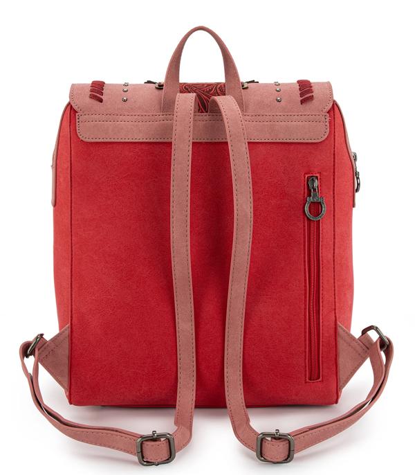 • Aztec and floral tooled applique on the flap with magnetic button closure