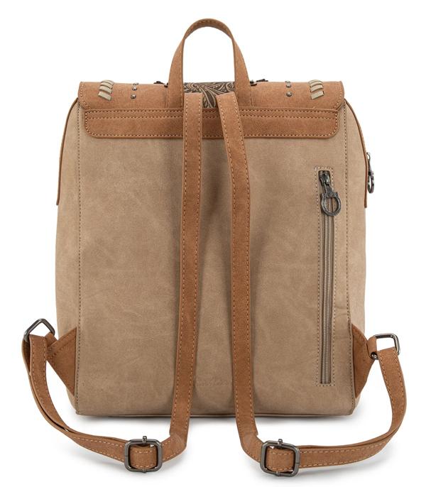 • Aztec and floral tooled applique on the flap with magnetic button closure