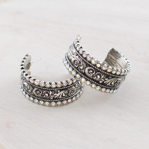 ICON Tooling Rhinestone Hoop Earrings.1.5".Post back.Lead & nickel compliant
