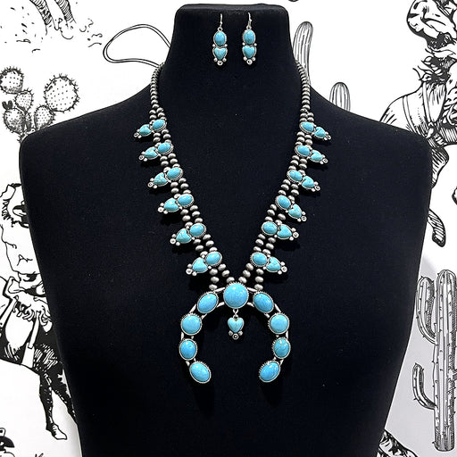 Turquoise Semi Stone Aztec Necklace.Approx: 20" .Lobster claw closure with extending hooks.Lead & nickel compliant