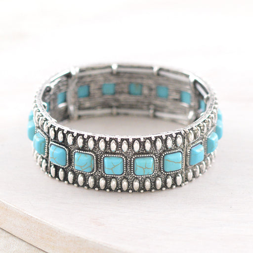 ICON Turquoise Semi Stone Stretch Bangle Bracelet.0.75" wide.Stretch.Lead & nickel compliant