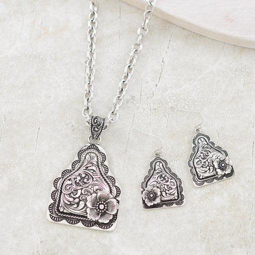 Tooling Cattle Tag Pendant Necklace Set .Approx size: 18".Lobster claw closure with extending hooks.Lead & nickel compliant