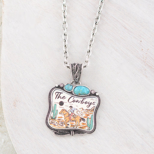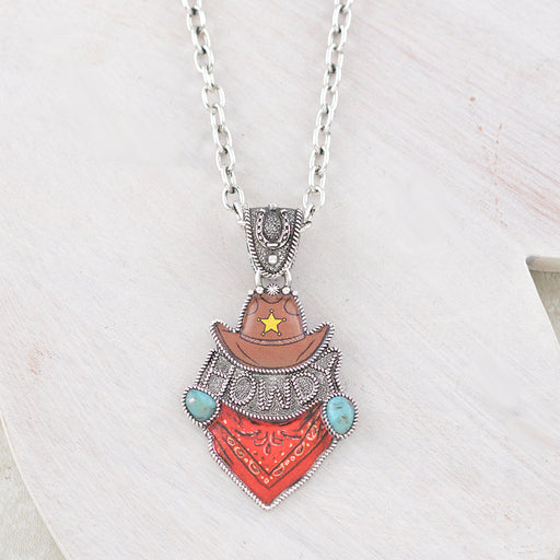 Howdy Cowboy Pendant Necklace .Approx size: 18".Lobster claw closure with extending hooks.Lead & nickel compliant