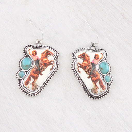 Vintage Cowgirl Earrings .Approx size: 2" drop.Casting hook.Lead & nickel compliant