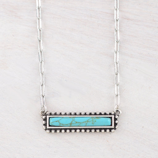 Turquoise Semi Stone Bar Necklace .Approx size: 18".Lobster claw closure with extending hooks.Lead & nickel compliant