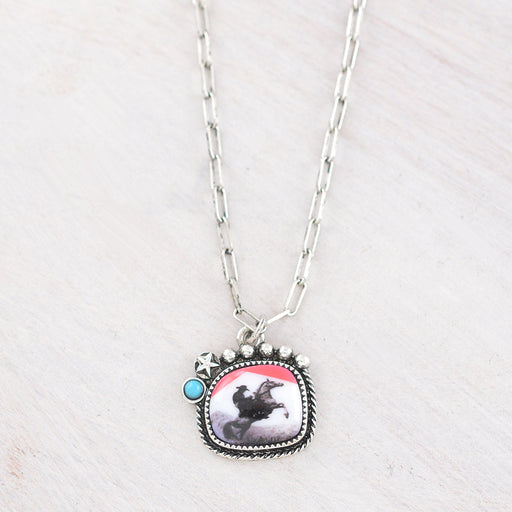 Tipi Brand Cowboy Pendant Necklace .Approx size: 18".Lobster claw closure with extending hooks.Lead & nickel compliant