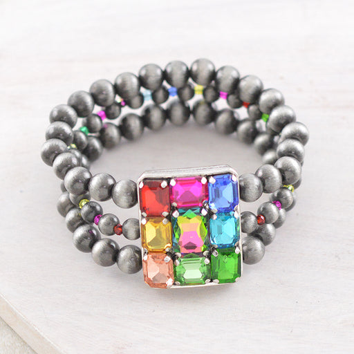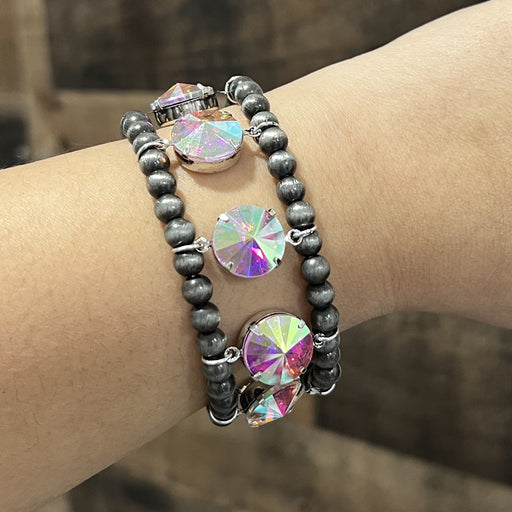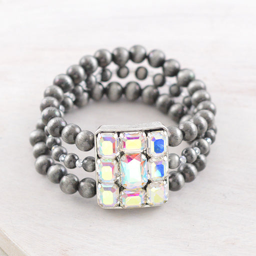 AB Stone Navajo Pearl Bead Bracelet.Approx: 1.25" wide.Stretch.Lead & nickel compliant