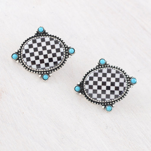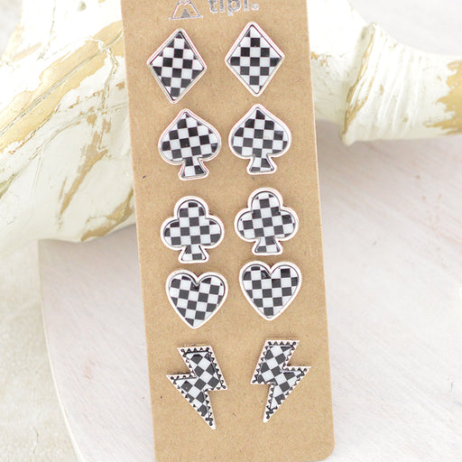 TIPI Western Checkered Earrings Set.5PC Set.Post back.Lead & nickel compliant