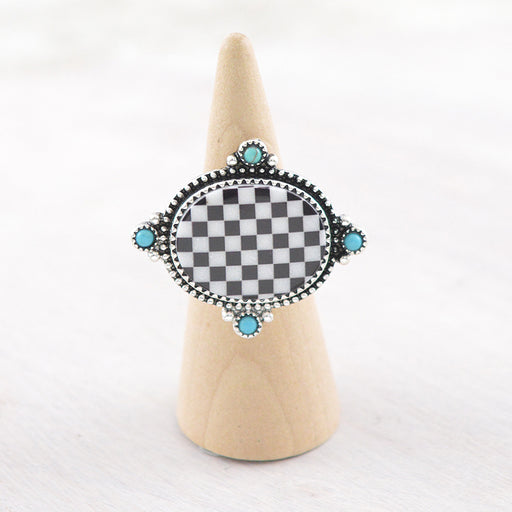 TIPI Turquoise Checkered Ring .Pendant size: 1.5" x 1.25".Cuff style.Lead & nickel compliant