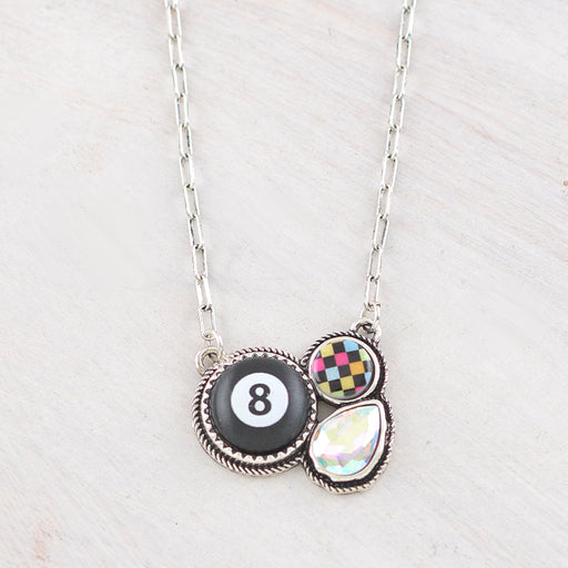 TIPI Checkered Eight Ball Pendant Necklace.Approx: 18" .Pendant size: 1.25" x 1".Lobster claw closure with extending hooks.Lead & nickel compliant