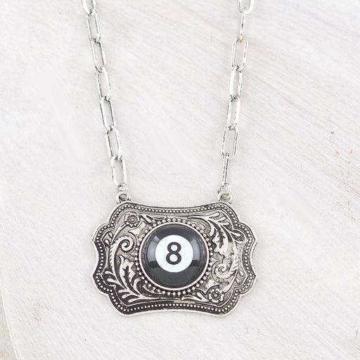TIPI Eight Ball Pendant Necklace.Approx: 18" .Pendant size: 2" x 1.5".Lobster claw closure with extending hooks.Lead & nickel compliant