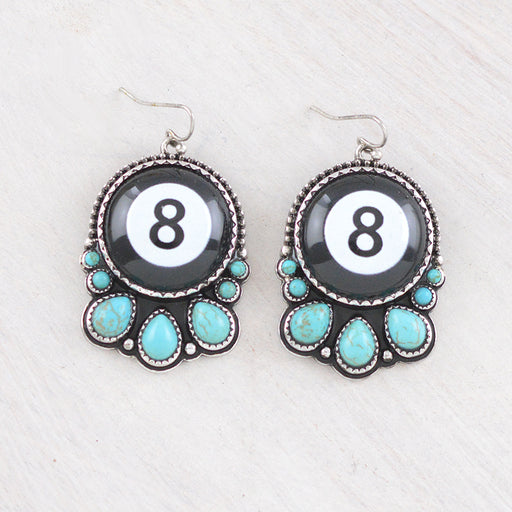 TIPI Turquoise Eight Ball Earrings.Approx: 2" drop.Casting hook.Lead & nickel compliant