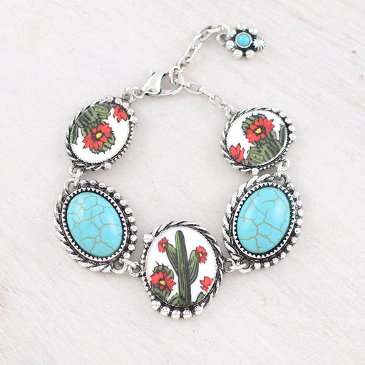 Cactus Turquoise Semi Stone Bracelet .Approx. length: 6"-7.5".Lead & nickel compliant