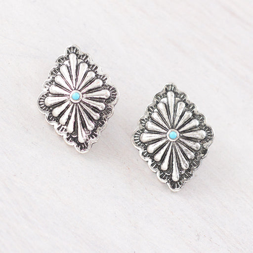 Western Aztec Concho Earrings.Approx: 1" .Post back.Lead & nickel compliant
