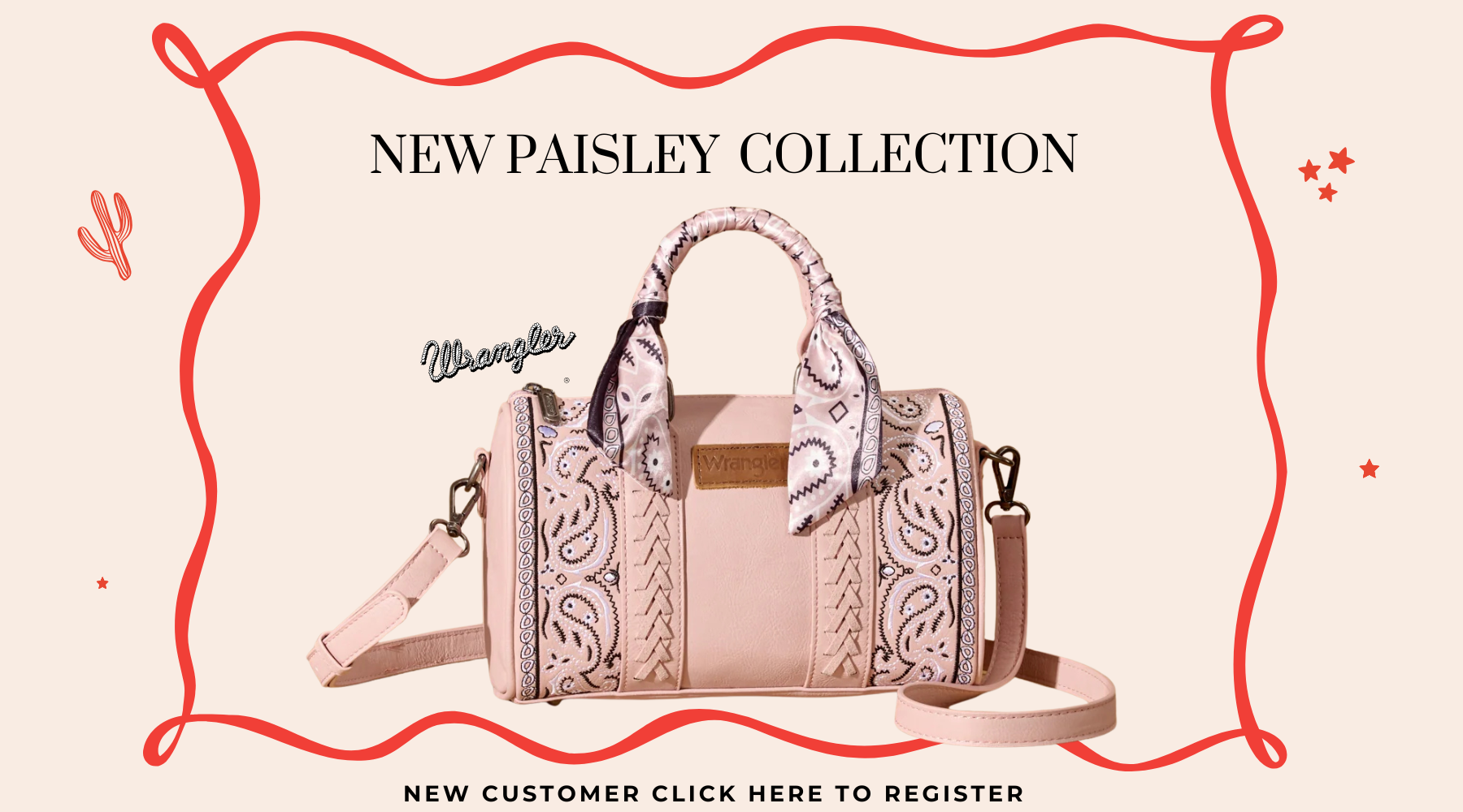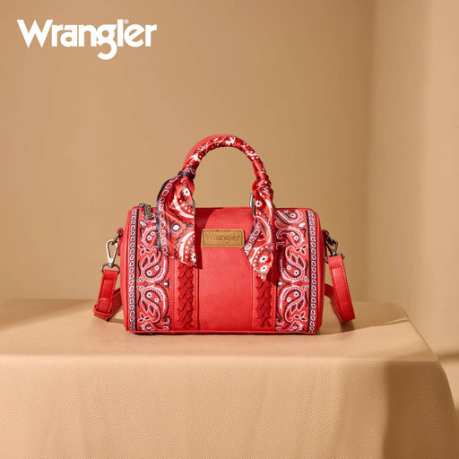 Wrangler Paisley Print Barrel Crossbody Bag Embroidered paisley with western-inspired whipstitch detailing Signature Wrangler® logo applique on th...