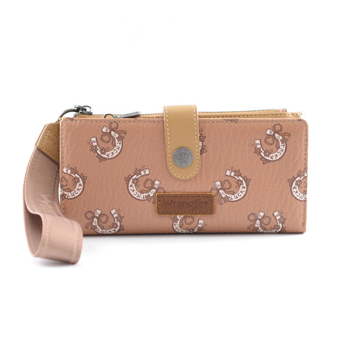 Made of canvas and PU leather All-over western-themed print (boots, hats & bows) Embroidered Wrangler logo (EST. 1947) Zip-around closure Int...