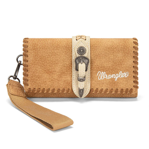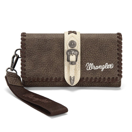 Made of PU leather Decorative antique buckle with braided edge detailing Detachable wristlet strap with Wrangler logo and keyring (Drop: 7") Snap ...