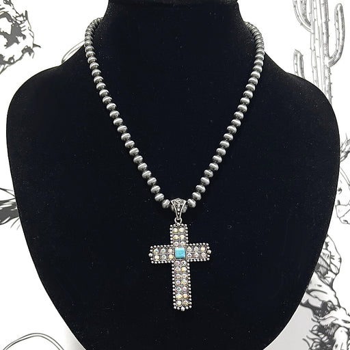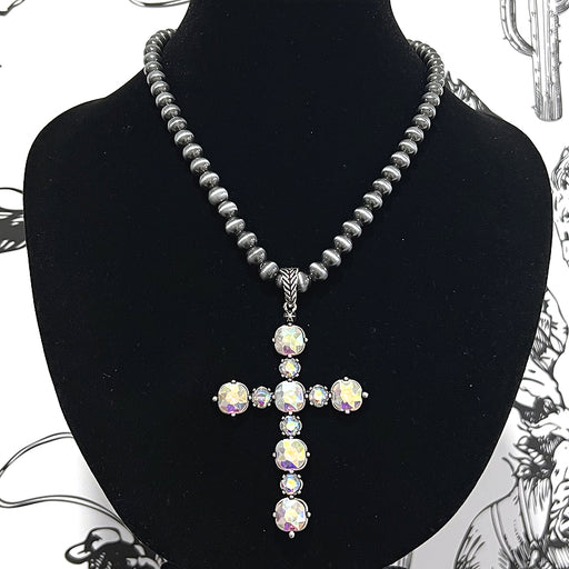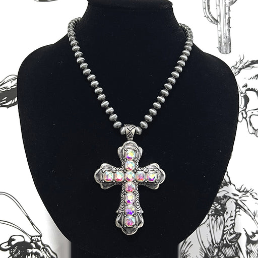Rhinestone Cross Pendant Navajo Necklace .Approx size: 18".Lobster claw closure with extending hooks.Lead & nickel compliant