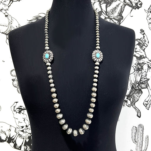 Concho Navajo Pearl Bead Necklace .Approx size: 34".Lobster claw closure with extending hooks.Lead & nickel compliant