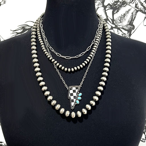 Western Navajo Pearl Bead Layered Necklace .Approx size: 16"-20".Lobster claw closure with extending hooks.Lead & nickel compliant