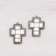 Turquoise & AB Stone Cross Earrings