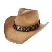 Vintage Cowboy Straw Hat with Longhorn Buckle