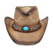 Straw Cowboy Hat with Turquoise Accent