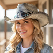 Straw Cowboy Hat with Studded Band