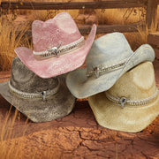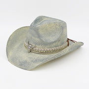 Handmade Cowboy Straw Hat with Silver Bull Head