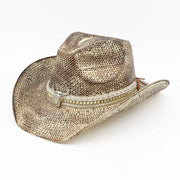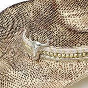 Handmade Cowboy Straw Hat with Silver Bull Head