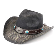 Western Straw Cowboy Hat with Turquoise Band