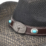 Western Straw Hat with Turquoise Bull Concho Band