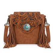 Montana West Floral Tooled Fringe Crossbody Bag