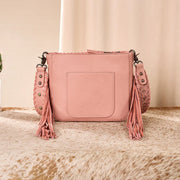 - Detachable floral tooled whipstitch studs crossbody strap (Drop: 24")