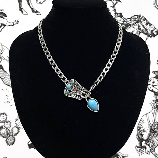 Turquoise Buckle Chain Necklace .Approx: 18"L.Lobster claw closure w/extending hooks.Lead & nickle compliant