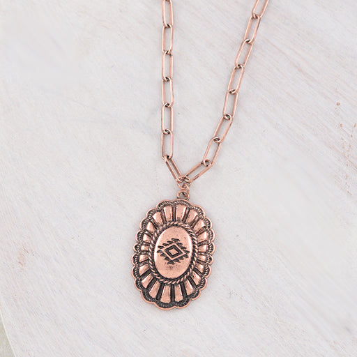 Aztec Concho Pendant Necklace .Approx: 18"L.Lobster claw closure w/extending hooks.Lead & nickle compliant