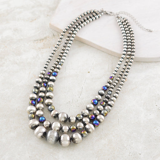 Navajo Pearl Bead Layered Necklace .Approx: 18"L-20"L.Lobster claw closure w/extending hooks.Lead & nickle compliant
