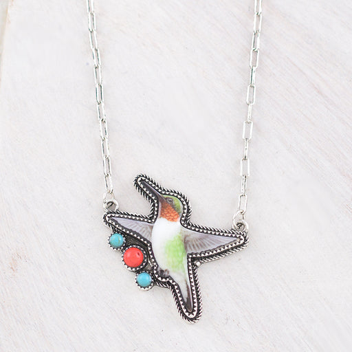 Humming Bird Pendant Necklace.Approx: 18".Lobster claw closure with extending hooks.Lead & nickel compliant