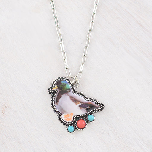 Mallard Duck Necklace.Approx: 18" .Lobster claw closure with extending hooks.Lead & nickel compliant