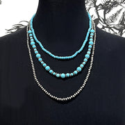 Western Turquoise Navajo Bead Layered Necklace