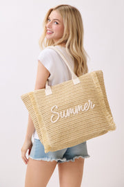 Woven Straw Summer Embroidered Letter Tote Bag